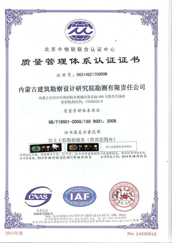 質量管理體系認證證書